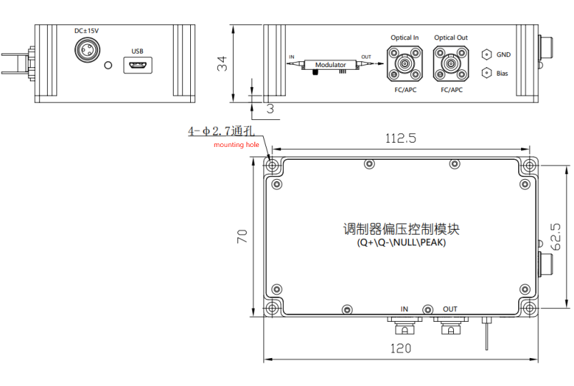 1* refers to the power range input to the module when the modulator output is maximum. For the low point control of the modulator with a high extinction ratio, the input power should be appropriately increased; With special power input requirements, you can adjust the internal coupler and detector gain indicators, please consult sales when placing orders.